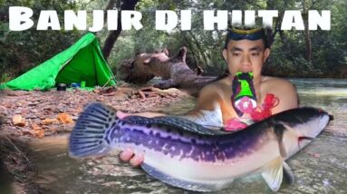 Tenting Fishing di guyur hujan deras sampai banjir mencari ikan di hulu sungai Camp in a single day