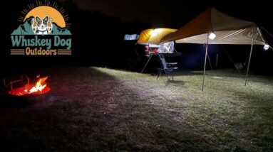 Truck tenting and fishing with my canine when a storm rolls in! – Brats on the mini-grill!