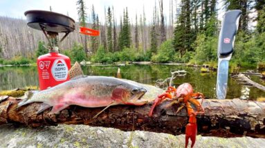 SOLO Mountain Trout Fishing & WILD Crawfish Boil!!! (Catch, Cook dinner, Camp)