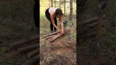 the girl stays within the woods and does every part and keep #bushcraft #tenting #outdoor #survival